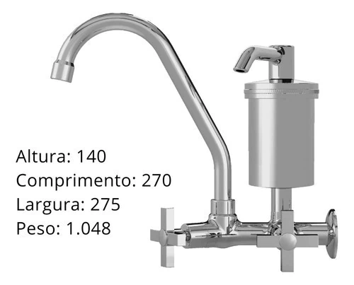 Torneira Cozinha Parede Metal Filtro Real C38 Cromado - Elegância e Funcionalidade em Sua CozinhaA Torneira Cozinha Parede Metal Filtro Real C38 Cromado é a combinação perfeita de design sofisticado e praticidade. Fabricada em metal de alta qualidade e acabamento cromado, ela oferece durabilidade e resistência à corrosão, garantindo uma cozinha mais bonita e funcional. Com filtro embutido, proporciona água limpa e purificada para sua família, tornando-a ideal para o dia a dia. Especificações TécnicasMarca: Real Modelo: C38 Material: Metal de alta resistência Acabamento: Cromado brilhante Tipo de Instalação: Parede Filtro Embutido: Sim, para água limpa e purificada Bica: Móvel com rotação de 360° para maior alcance Compatibilidade: Sistemas de água fria e quente (verificar pressão máxima) Rosca de Entrada: 1/2" Vantagens da Torneira Cozinha Parede Metal Filtro Real C38 CromadoDesign moderno: Combina com diversos estilos de cozinha Praticidade: Filtro integrado para água pura e saudável Durabilidade: Material resistente ao uso diário e ao tempo Fácil instalação: Compatível com padrões de encanamento residenciais Adquira agora a Torneira Cozinha Parede Metal Filtro Real C38 Cromado e leve sofisticação e funcionalidade para sua cozinha! Conteúdo da Embalagem: 01 torneira cozinha parede Dimensões do Produto: Altura: 140 Comprimento: 270 Largura: 275 ***ENVIO IMEDIATO EM HORÁRIO COMERCIAL*** ***TODOS OS PRODUTOS SÃO RIGOROSAMENTE TESTADOS ANTES DO ENVIO***