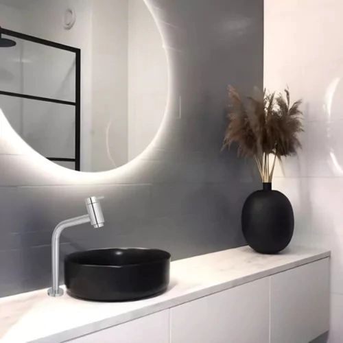 Seu design moderno e curvo transforma o ambiente, proporcionando elegância e praticidade no uso diário — ideal para banheiros residenciais e comerciais.